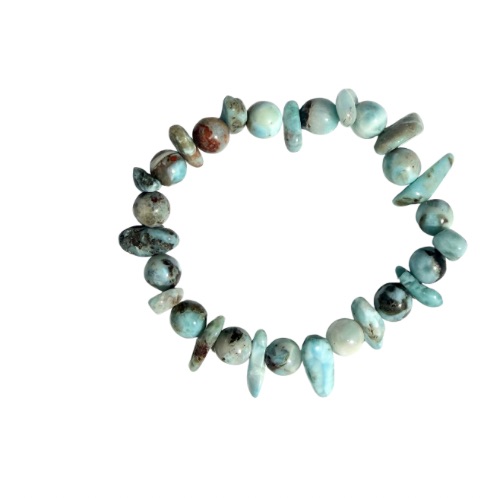 Das Armband Eiko wird von seinen typischen Blautönen durchzogen, und trägt die Farben von Meer, Himmel und Licht in sich . Die natürlichen Begleitmineralien in rötlichen, braunen, rostfarbenen und grauen Nuancen erinnern an Erde, Fels und ursprüngliche Natur. In der Kombination von abwechselnd gearbeiteten Kugeln und Splittern entsteht ein lebendiges, organisches Gesamtbild, das die Ursprünglichkeit dieses besonderen Steins unterstreicht.