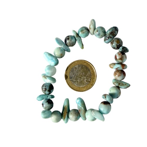 Dem Larimar wird nachgesagt, eine beruhigende und harmonisierende Wirkung zu besitzen, innere Balance zu fördern und Gelassenheit, Klarheit sowie sanfte Lebensfreude zu unterstützen. Eiko verbindet so auf natürliche Weise ästhetische Schönheit mit einer feinen, energetischen Ausstrahlung.