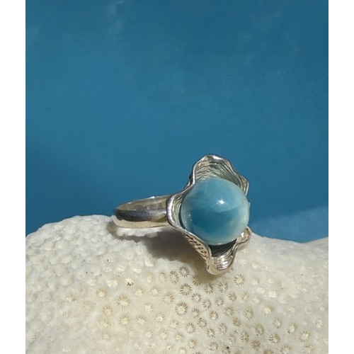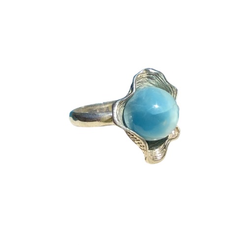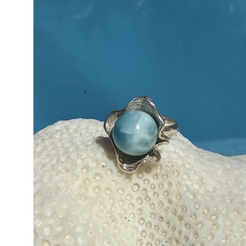 Flora – Außergewöhnlicher Larimarring in Blütenform
