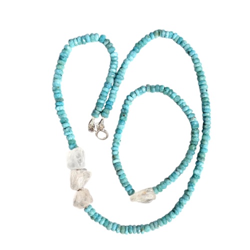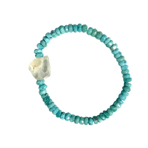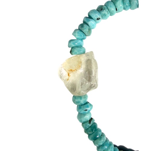 • Material: facettierte Larimarscheiben, stabiles Schmuckgummi, Bergkristall