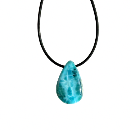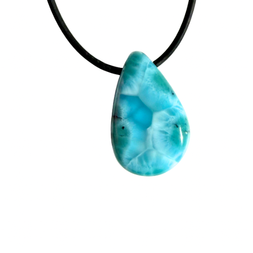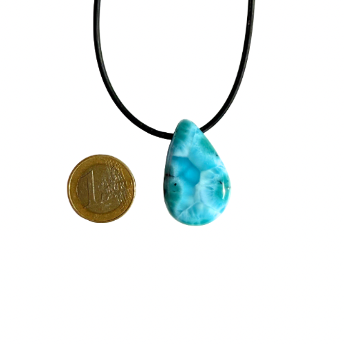 Der tropfenförmige Larimar-Anhänger Wasil vereint die ganze Schönheit des Meeres in sich.