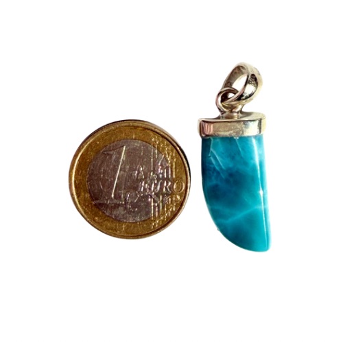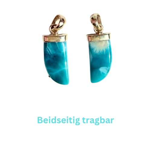 Dieser Haifischzahn-Anhänger aus Larimar ist wie ein eingefangener Moment am Meer – kraftvoll und gleichzeitig voller Ruhe. Auf der einen Seite tanzt das Licht: Blau- und Weißtöne verschmelzen wie Sonnenstrahlen, die durch den Himmel brechen und sich auf den Wellen spiegeln. Es ist diese Energie, die dich atmen lässt, dich aufrichtet, dich erinnert, wie frei du bist. Drehst du den Anhänger, verändert sich alles. Die Rückseite wird stiller. Tiefer. Sanfter. Feine weiße Linien ziehen sich durch ruhige Blautöne – wie das leise Flüstern des Ozeans, wenn alles zur Ruhe kommt. Gehalten von einer schlichten Fassung aus Silber, bleibt die Schönheit des Steins ganz bei sich – klar, kühl und ehrlich. Dieser Anhänger ist mehr als ein Accessoire, er ist ein Begleiter. Für Tage voller Kraft und für Momente, in denen du einfach loslassen willst.